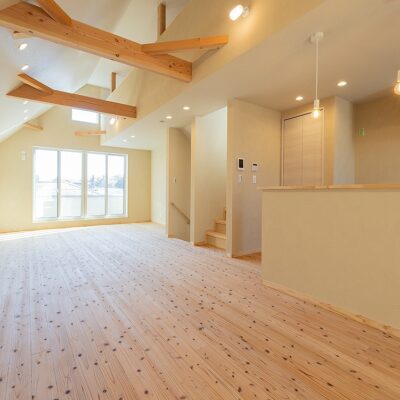 - 広々としたLDKと吹き抜け: 家族がゆったりと過ごせる広いLDKに、開放的な吹き抜け。