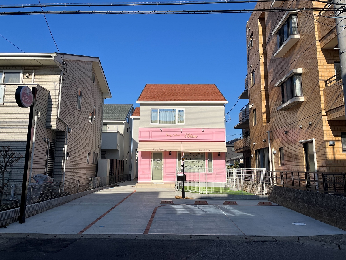 ドックサロンを店舗にかまえた、店舗兼住宅を建築しました。
