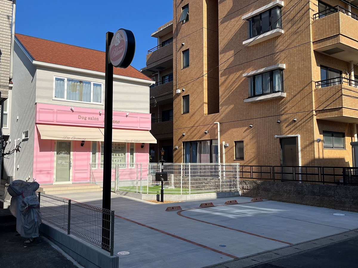 ドックサロンを店舗にかまえた、店舗兼住宅を建築しました。